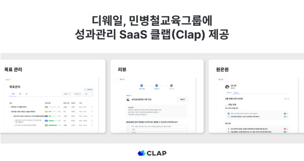 성과관리 솔루션 스타트업 디웨일은 외국어교육 전문기업 ‘민병철교육그룹(대표 민병철, BCM)에 자사의 SaaS 기반 상시 성과관리 서비스 ‘클랩(CLAP)’을 제공한다고 18일 밝혔다.